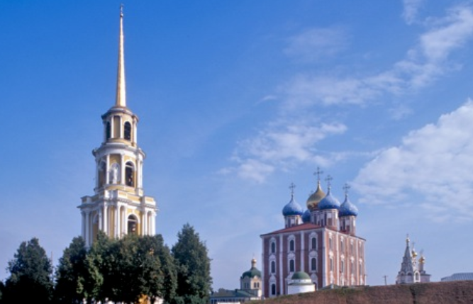 The destruction of Ryazan in the 13th centuries produced one of Russia’s few epics, but the city was rebuilt and boasts a number of historic monuments. Among the ancient cities of the Russian heartland, few have endured a more turbulent history than Ryazan. Already an important town in the 11th century, Ryazan was completely devastated by the Mongols in 1237 and eventually revived at another location nearby. Today, Ryazan is a growing city with a population of over half a million, conveniently located 110 miles to the south of Moscow. Among its several distinctions, Ryazan serves as a major administrative center of the Russian Orthodox Church. Indeed, the Ryazan kremlin has one of the most imposing cathedrals in all Russia.